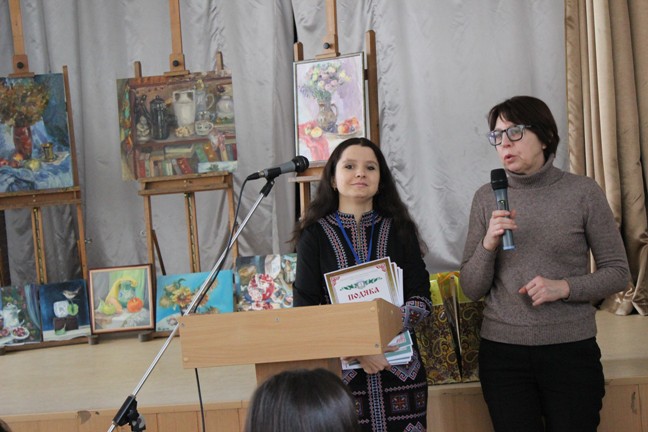 Переможці отримали подарунки від директора галереї «Коло» О.М.Старшинової. Картини призерів конкурсу будуть продані на аукціоні, метою якого є збір коштів на потреби бійців АТО.