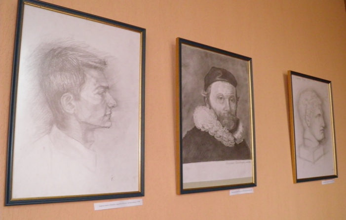 На цій виставці представлені роботи з рисунку, виконані студентами у різних техніках. Рисунки виконані олівцем та вугіллям. Тут ми можемо побачити і рисунок гіпсової голови, і копію з роботи відомого художника, і портрети з натури.
