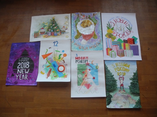 Новорічна метушня 13.12.2017 року студенти ІІІ курсу Університетського коледжу спеціальності «Дизайн» презентували авторські плакати для оформлення приміщень коледжу до новорічних свят.