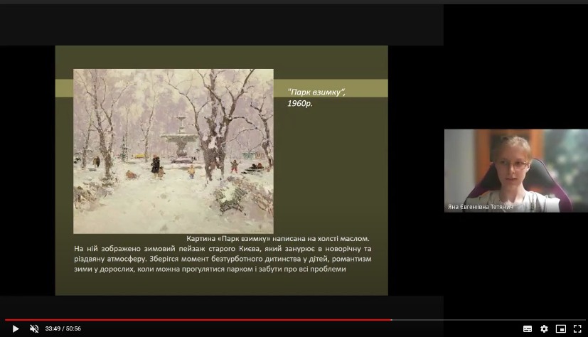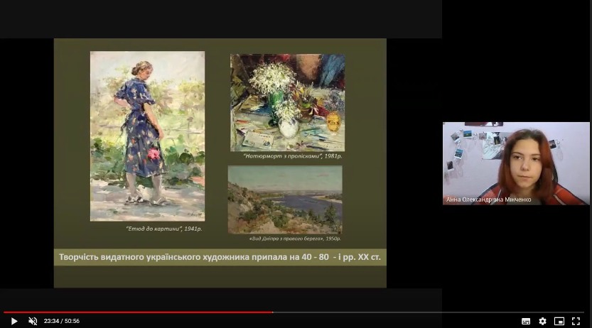 30.10.2020 року студенти 3 курсу спеціальності «Образотворче мистецтво» презентували власне дослідження про творчість відомого українського художника Сергія Шишка. Всі бажаючі мали нагоду приєднатись до заходу в онлайн-режимі на платформі GoogleMeet.