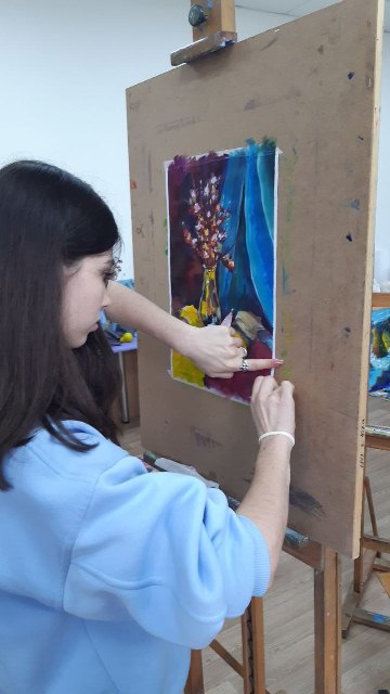 28 вересня 2022 року з нагоди Дня Університету студенти 3 курсу спеціальності “Образотворче мистецтво” відвідали майстер-клас викладача коледжу Шеменьової Юлії “Натюрморт на пленері”, де засвоїли нові техніки акрилового живопису.