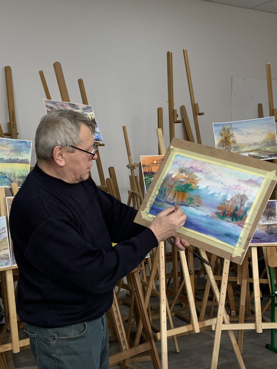 Студенти ІІ курсу спеціальності “Дизайн”, а також всі гості мали нагоду прослідкувати за роботою майстра та спробувати відтворити український пейзаж засобами акварельного живопису.