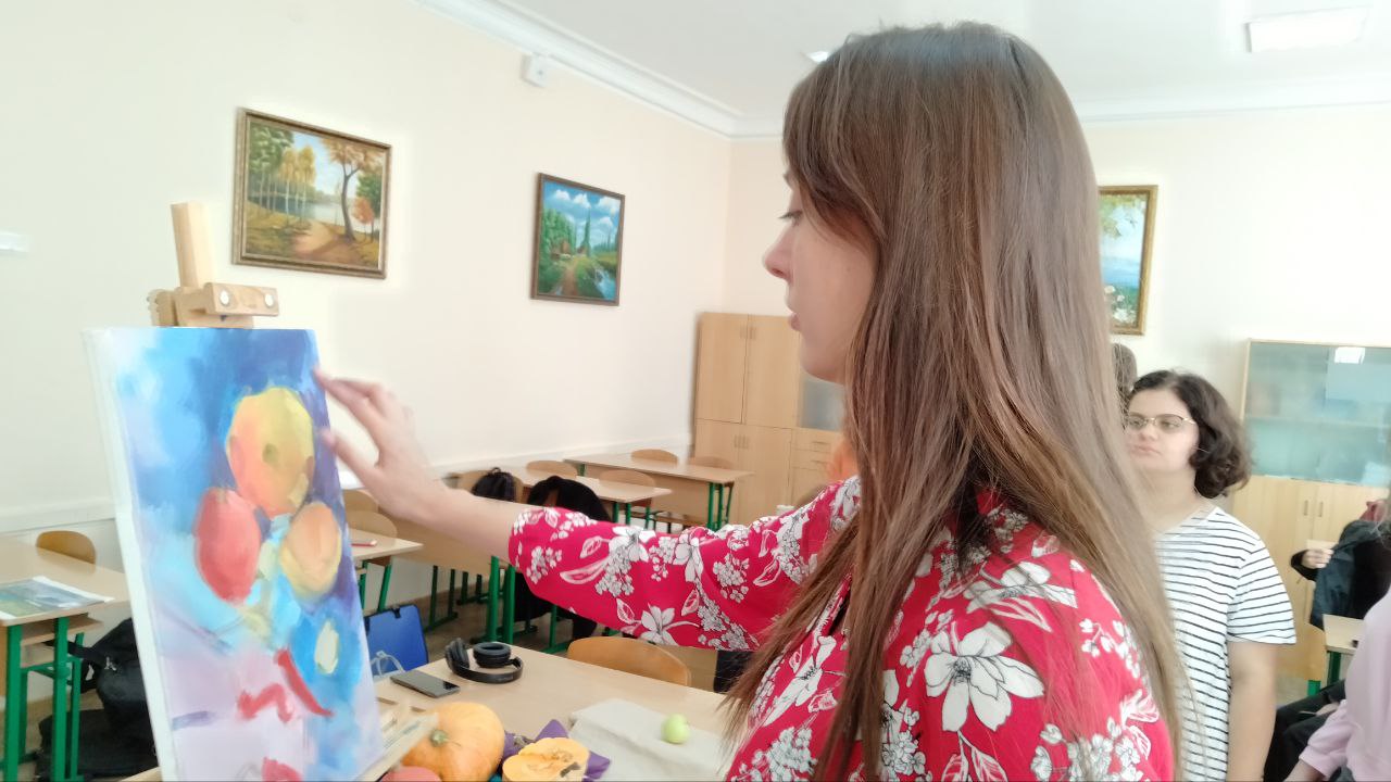 10 жовтня 2023 року студентки спеціальності “Образотворче мистецтво” Фахового коледжу “Універсум” Київського університету імені Бориса Грінченка, а також всі бажаючі відвідали майстер-клас з олійного живопису викладачки циклової комісії образотворчого мистецтва і дизайну Людмили СОЧЕНКО.