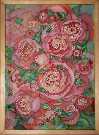 Експозиція складається із чотирьох робіт: «Муза під зорями», «Англійські троянди», «Павичі» та «Підводний світ». В батиках дзвінко передана особистість художниці, її внутрішній світ – казковий, зворушливий, таємничий та багатобарвний.