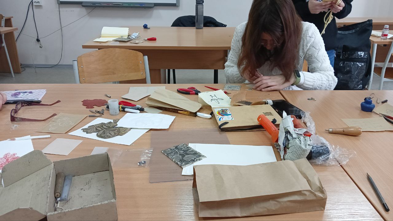 Студентки Фахового коледжу 06 грудня відвідали майстер клас з графіки. Студентки 2 курсу спеціальності Дизайн знайомляться з технікою "ліногравюра" на майстер-класі Факультет образотворчого мистецтва і дизайну Університету Грінченка від викладачки Діани Качуровської. Викладачка ознайомила студентів з технологією та історією виготовлення друкованої графіки, розповіла про різні види відбитків та методи їх виконання, а також студенти отримали змогу спробувати вирізати на лінолеумі за допомогою спеціальних різців творчу композицію.