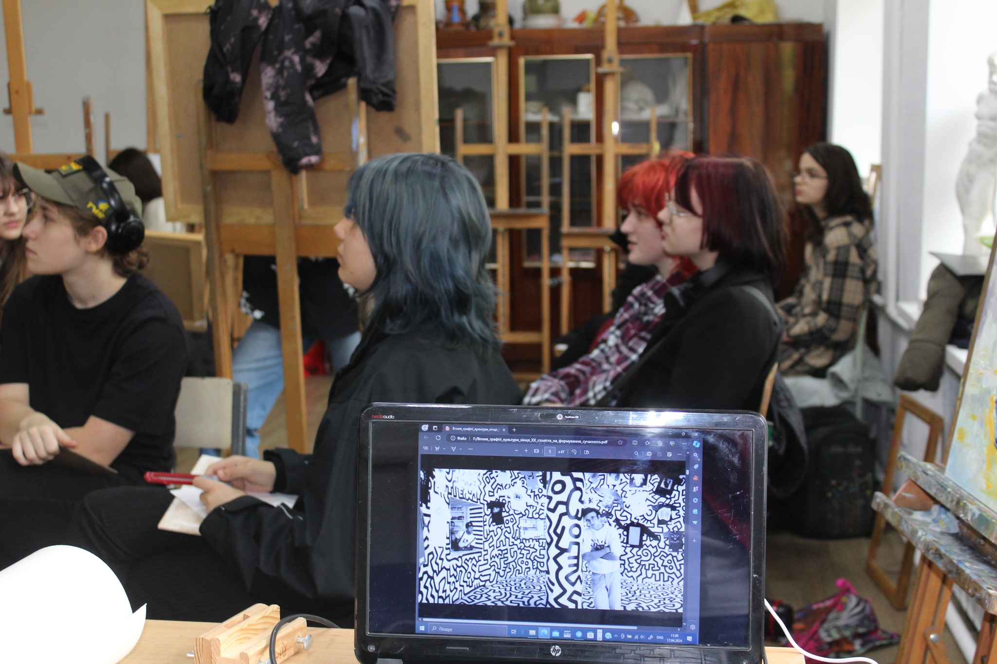 17 квітня 2024 року викладач циклової комісії образотворчого мистецтва і дизайну Фахового коледжу “Універсум” Київського столичного університету імені Бориса Грінченка Андрій МАЗОВ ознайомив студентів та відвідувачів заходу з техніками графіті.