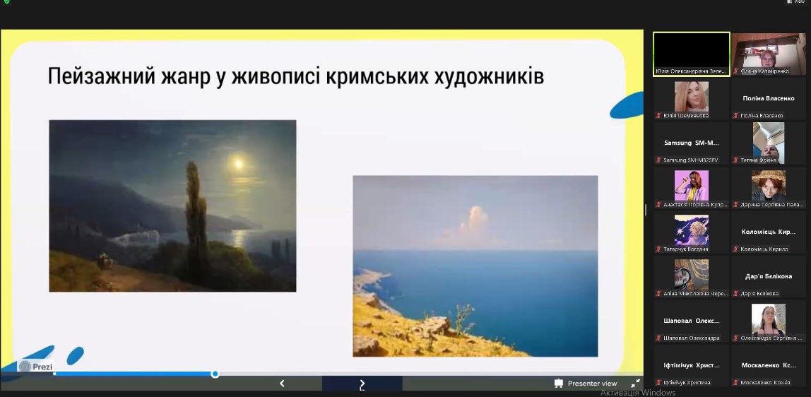Юлія ЗЕЛЕНКО “Екологічне виховання в контексті сучасного українського пейзажу в творчості художників Криму”, 4 курс Середня освіта (Образотворче мистецтво), керівниця Тетяна КОРМАКОВА.