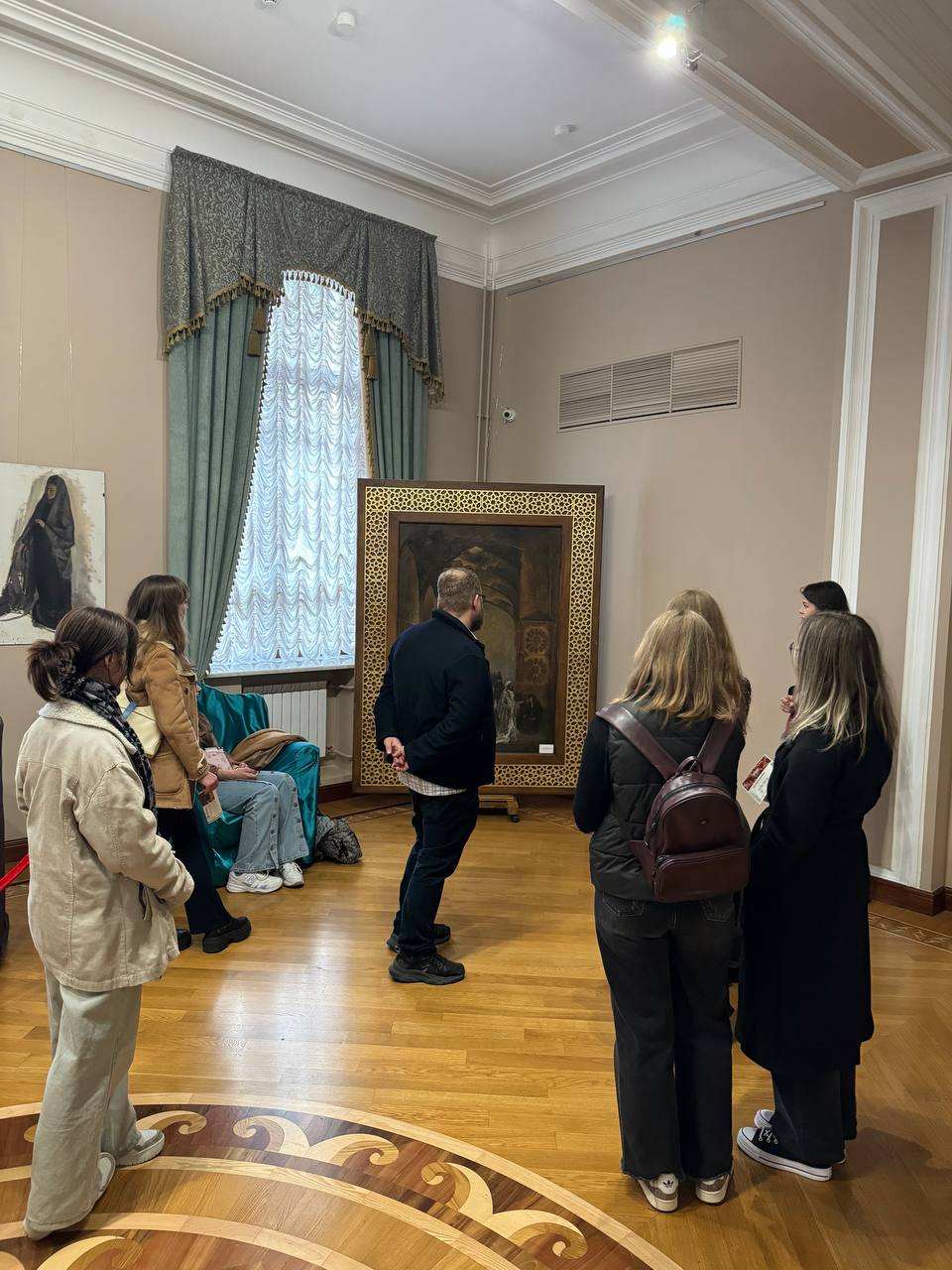 Студенти поспілкувались з Анатолієм Погорілим про різні аспекти та можливості виставкової діяльності, підготовку творів для експонування в галереї, а також про етапи роботи над дипломним проєктом та важливість дисципліни в роботі митця.