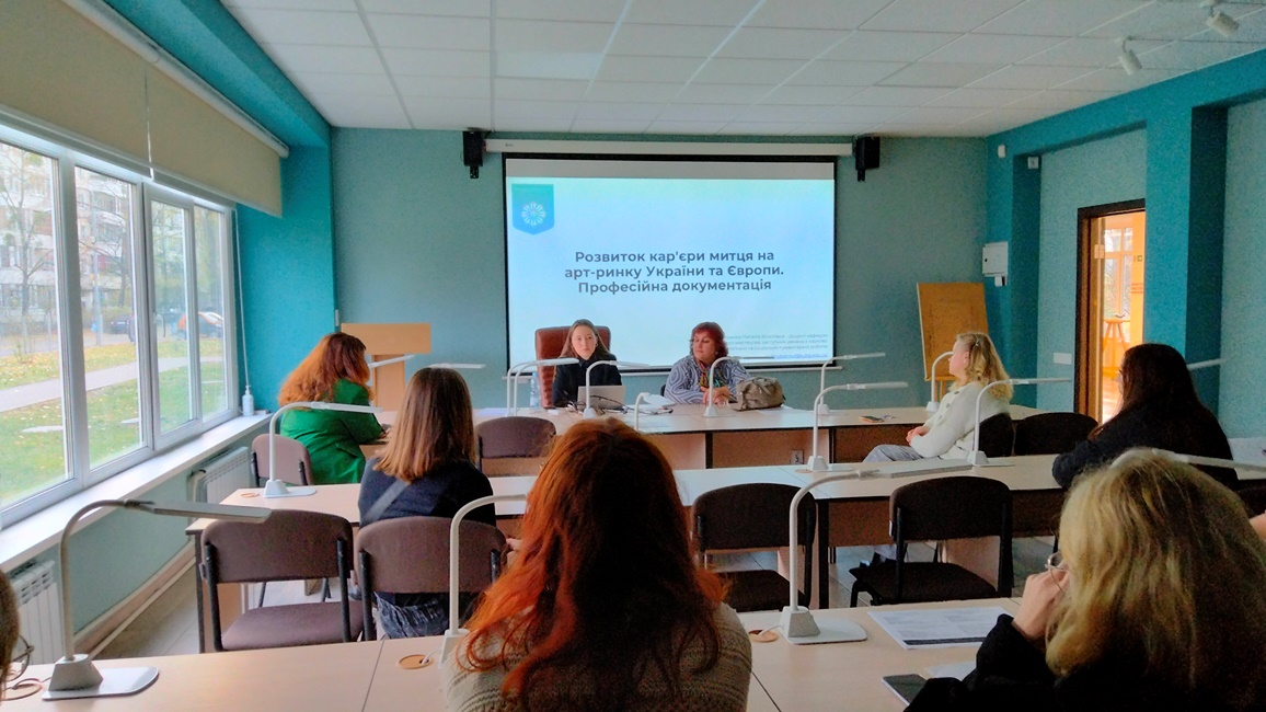 лекція від Дмитренко Наталії Віталіївни, заступник декана з науково-педагогічної та соціально-гуманітарної роботи, доктор філософії, доцент кафедри образотворчого мистецтва на тему: “Розвиток кар'єри митця на арт-ринку України та Європи. Професійна документація”.