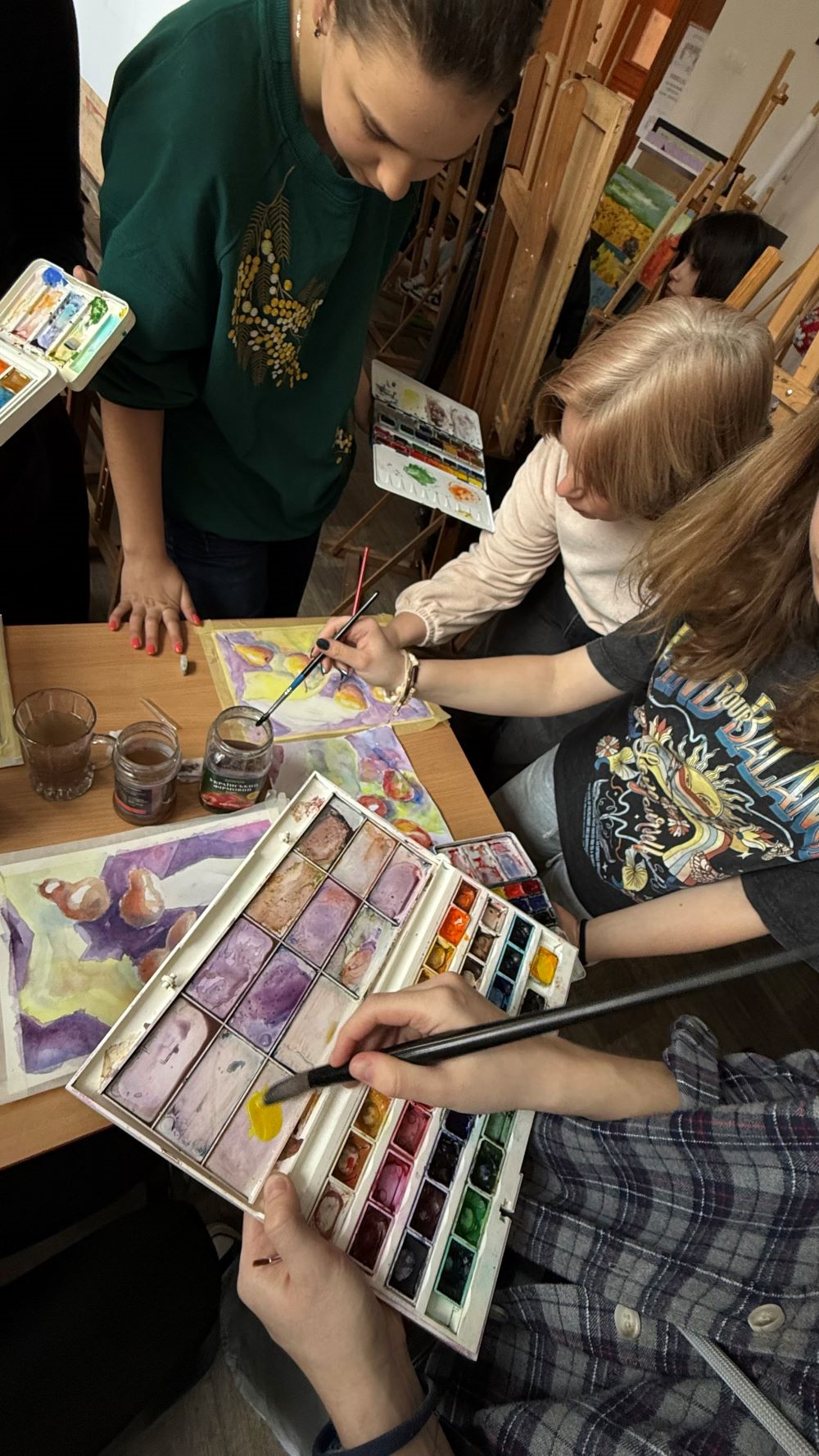 Ми зосереджувалися на тому, як передати об'єм та фактуру за допомогою акварелі, як не боятися чистоти кольору та як знаходити гармонійні кольорові поєднання. Було дуже приємно бачити, як студенти поступово долали свої страхи перед цим ніжним, але водночас виразним матеріалом.