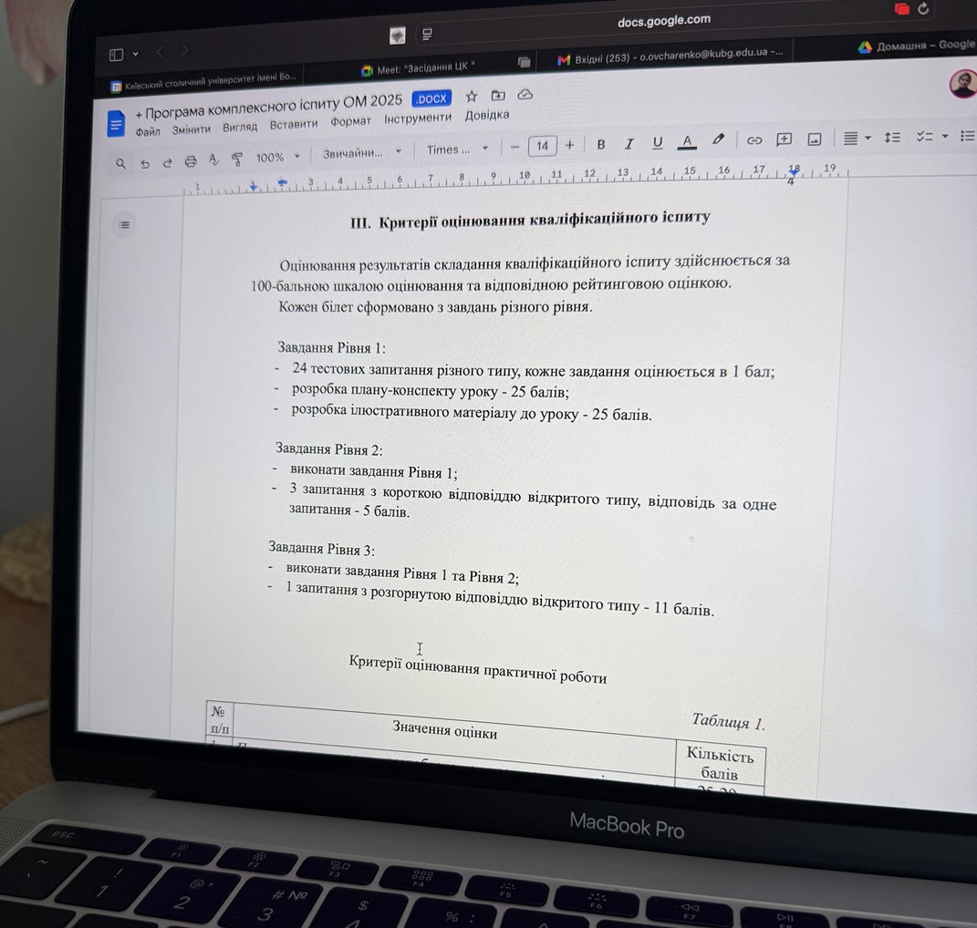 Під час обговорення Тетяна КОРМАКОВА та Андрій МАЗОВ звернули увагу на технічні аспекти підготовки до атестації. Було рекомендовано оновити джерельну базу та скоригувати перелік матеріалів, що використовуються здобувачами під час екзаменаційної сесії.