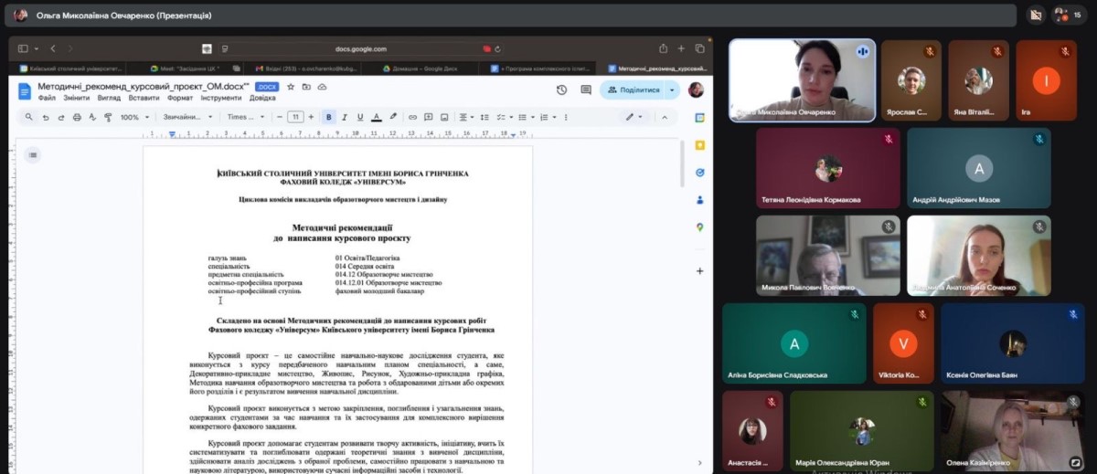 Другим пунктом засідання стала презентація та обговорення Методичних рекомендацій щодо написання курсових проєктів для спеціальності 014 Середня освіта (Образотворче мистецтво).