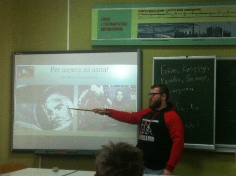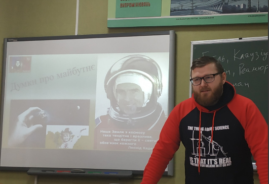 Студенти дізнались про історію визначення свята та розвиток космонавтики, про перший політ людини у космос, відомих вчених, конструкторі, цікаві факти життя Л. Каденюка.