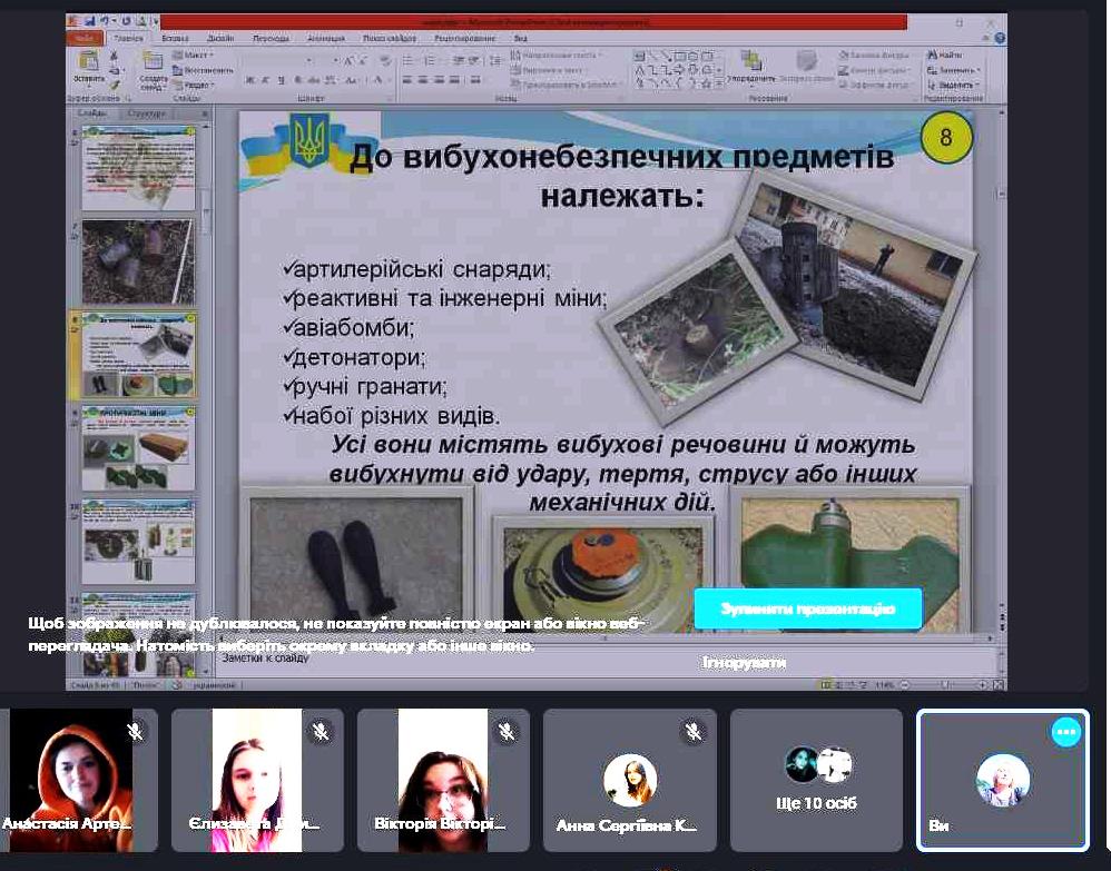 Перегляд відеофрагментів про зразки вибухонебезпечних предметів