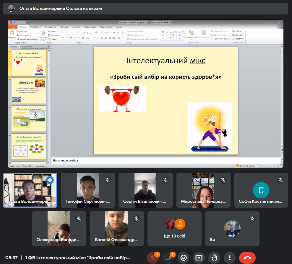 17 квітня 2023 року в Фаховому коледжі «Універсум» Київського університету імені Бориса Грінченка в рамках Декади природничих дисциплін для студентів ФВфмб-1-22-4.0д та ФВфмб-1-21-4.0д було проведено інтелектуальний мікс «Зроби свій вибір на користь здоров’я».