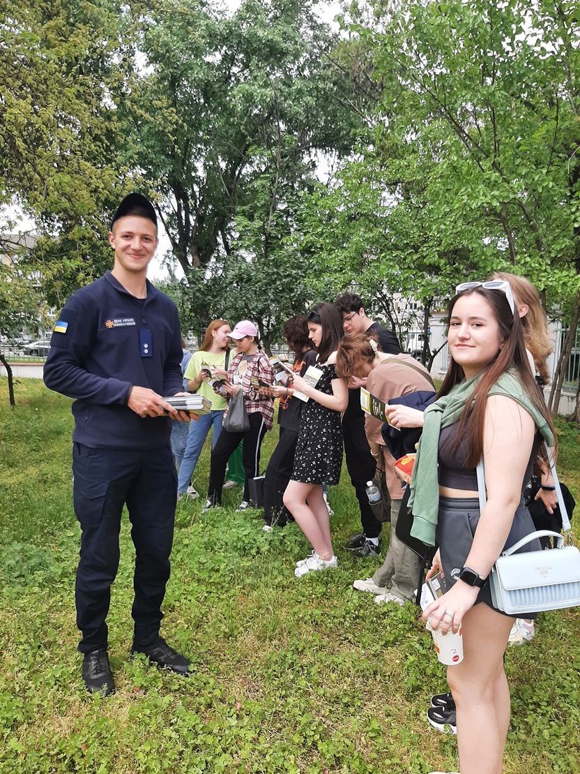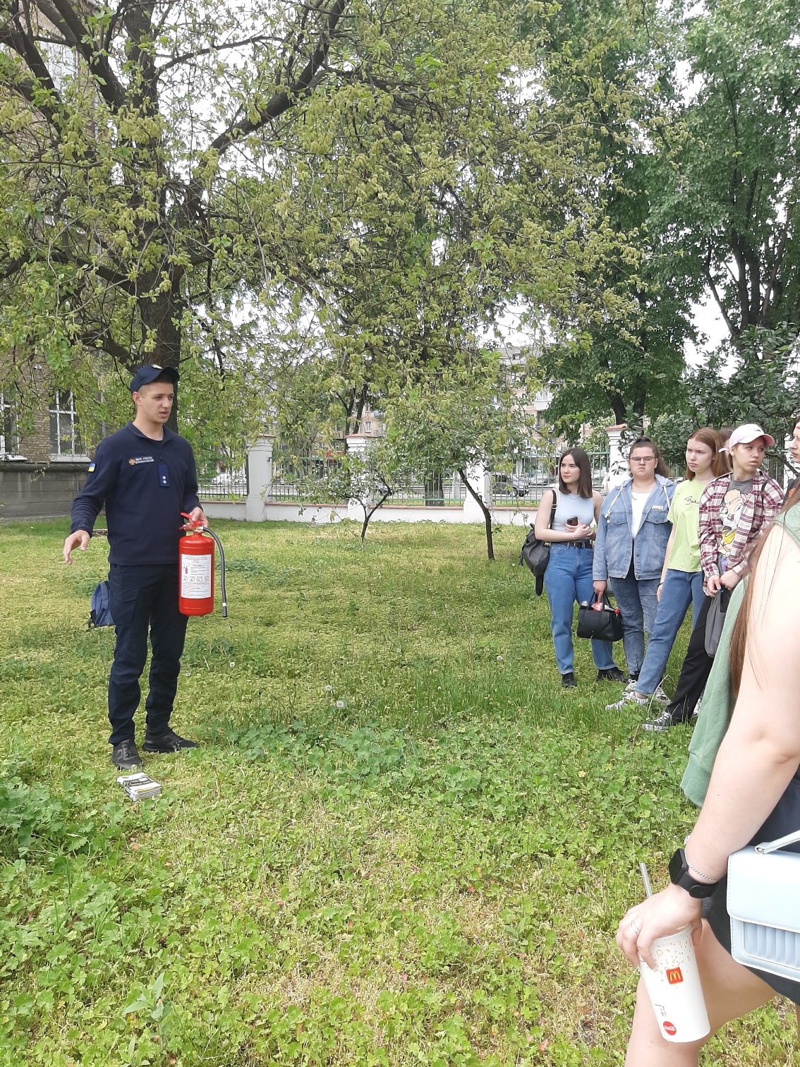 19.05.2023 року у Фаховому коледжі «Універсум» Київського університету імені Бориса Грінченка відбувся треніг з пожежної безпеки для студентів груп ПОфмб-2-21-4.0д та ОВфмб-1-21-4.0д. На зустрічі з провідним інспектором ВЗНС та ЗЦЗ Дніпровського РУ ГУ ДСНС України у м. Києві служби з надзвичайних ситуацій Євгеном Калиушком студенти ознайомилися з актуальною інформацією з пожежної безпеки в побуті, мінною безпекою під час воєнного стану, підвищили рівень елементарних необхідних знань про правила поведінки при пожежі та у випадках надзвичайних ситуацій.