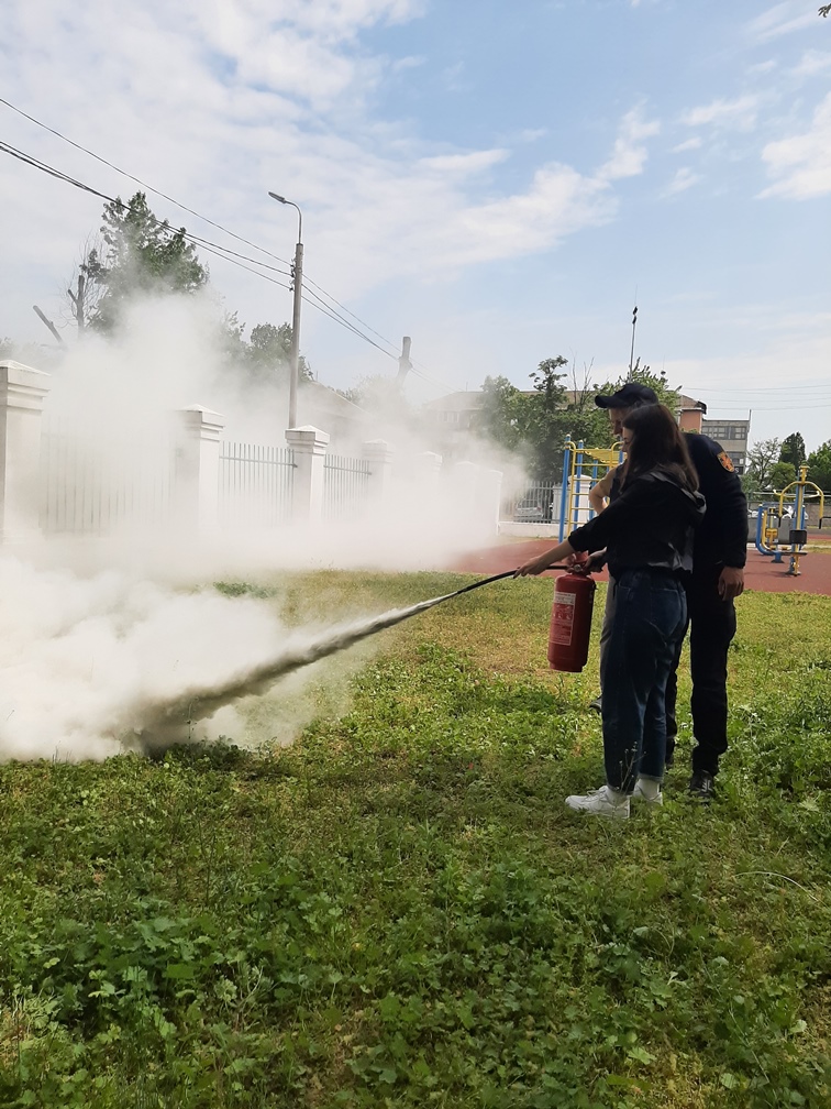 Студенти мали можливість на практиці застосувати порошковий вогнегасник, щоб краще засвоїти отримані знання та опанувати, необхідну для власної безпеки та безпеки оточуючих, навичку.