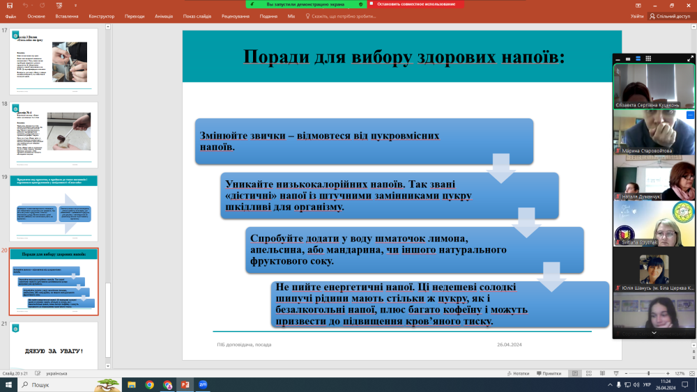 Студенти коледжу презентували роботу над проєктами: Куцеконь Єлізавета, Грущинська Марія- « Косметична хімія», Веретюк Катерина - «Coca-cola»- це користь чи шкода для організму?» Наші проєкти отримали великий інтерес з боку учасників та отримали позитивні відгуки.