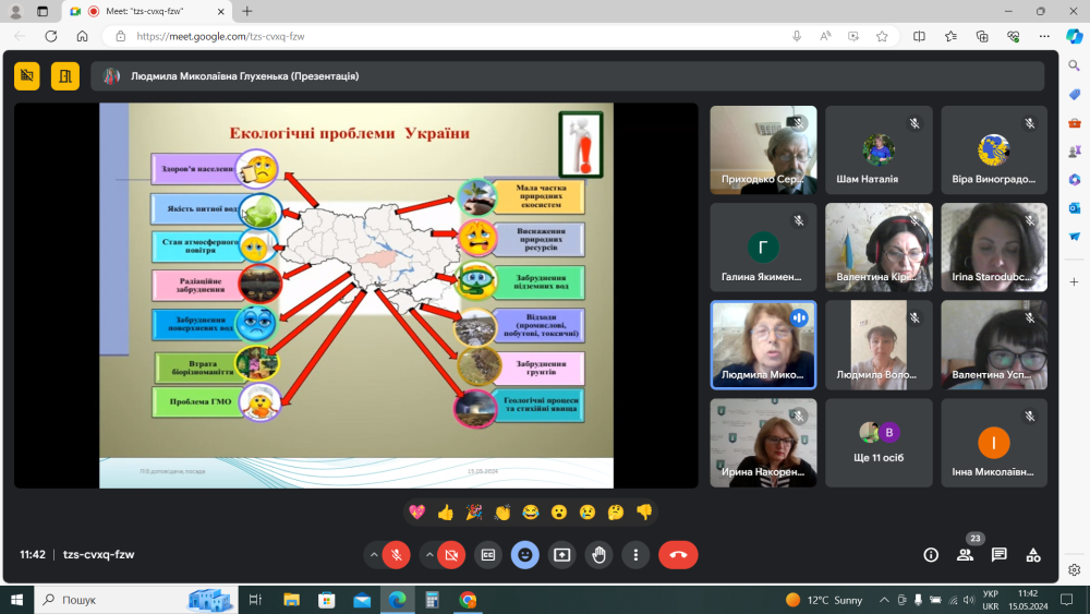15 травня 2024 року викладачі ЦК природничих дисциплін Глухенька Л.М., Вітер І.М., Варда Н.А., Камінецька А.Р., Мальцева Л.В. брали участь у онлайн- семінарі « Інтеграційний підхід у процесі формування екологічної компетентності здобувачів освіти педагогічних ЗФПО» серед викладачів природничих дисциплін педагогічних ЗФПО Центрального регіону України.