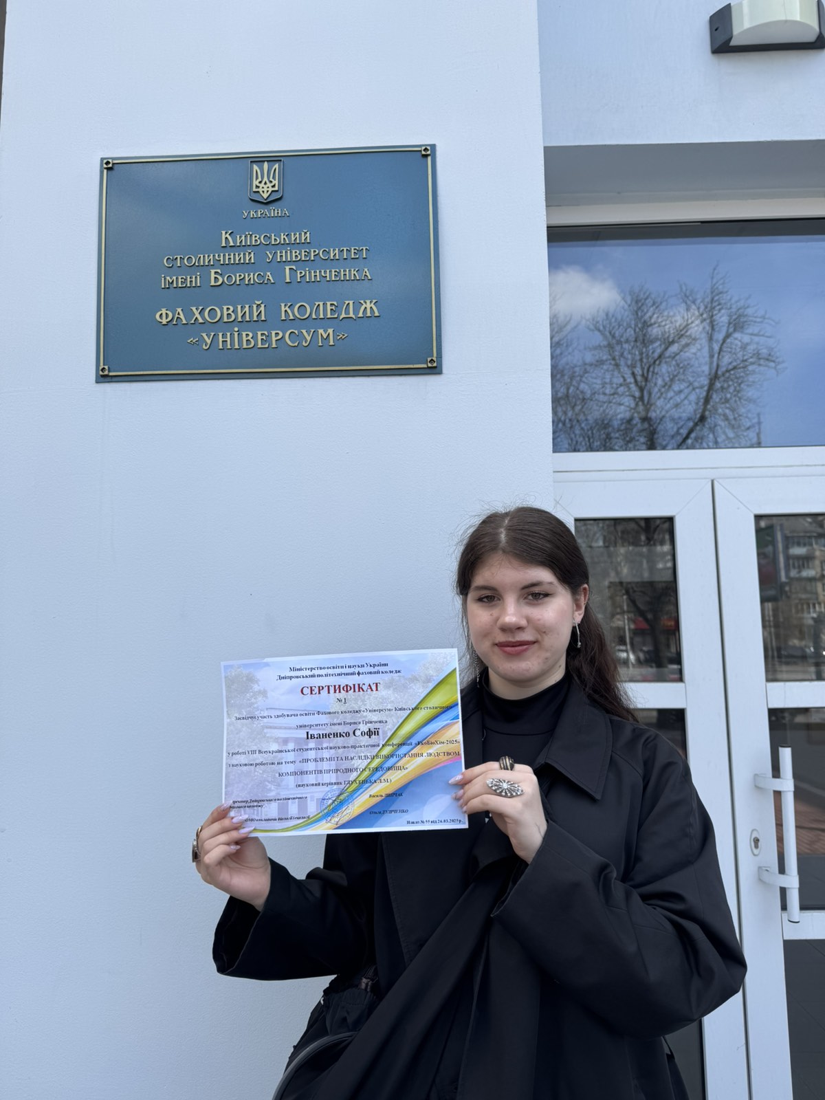 26.03.2025 року викладач ЦК природничих дисциплін Глухенька Л.М. разом зі студенткою спеціальності 013 Початкова освіта Іваненко Софією брали участь у VІІІ Всеукраїнській студентській науково-практичній конференції «ЕоБіоХім - 2025» «Наука ХХІстоліття- погляд в майбутнє» серед здобувачів освіти закладів фахової передвищої освіти, яка проходила на базі Дніпровського політехнічного фахового коледжу.