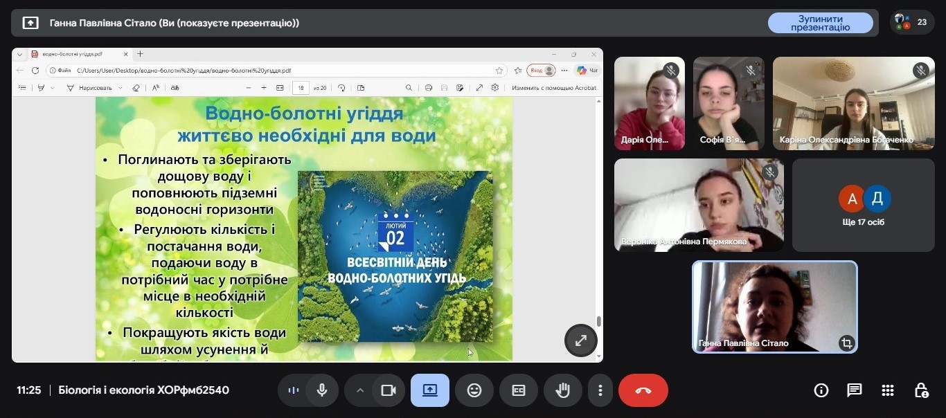 З метою відзначення Всесвітнього дня водно-болотних угідь 02 лютого 2026 року у Фаховому коледжі «Універсум» Київського столичного університету ім. Бориса Грінченка викладачем біології і екології Сітало Г.П. були проведені інформаційні хвилинки серед студентів 1 курсів.
