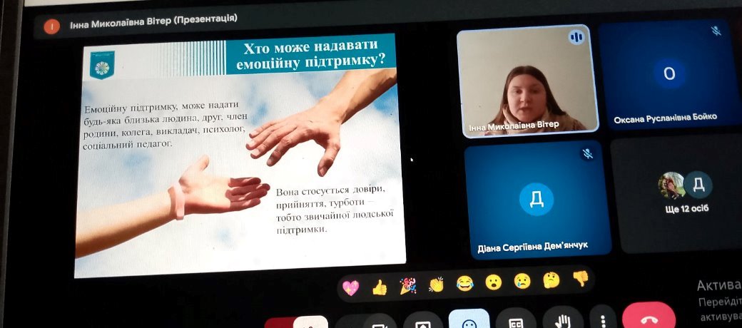 Під час зустрічі було визначено, що емоційна підтримка — це можливість розділити переживання з людиною, яка готова вислухати та допомогти. Надати таку допомогу може не лише фахівець (психолог чи соціальний педагог), а й будь-яка близька людина: друг, колега або член родини, ґрунтуючись на довірі та турботі.