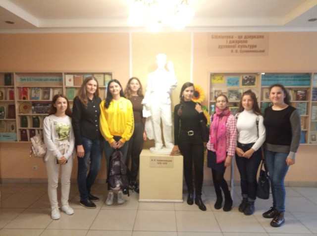 4 жовтня 2019 року відбувся воркшоп у Державній науково-педагогічній бібліотеці імені Василя Сухомлинського «Педагогіка серця у спадщині Василя Сухомлинського» для груп ПОм-3-17-4.Од, ПОм-1-17-4.Од. Студенти мали можливість у цікавій формі познайомитися зі спадщиною відомого педагога, його педагогічними ідеями. Також преглянути серію фільмів про Василя Сухомлинського, окрім того познайомитися з унікальними стародруками, бібліотечним фондом читального залу, споглядати виставку унікальних робіт художників. Майбутні педагоги відвідали музейний зал, присвячений Василю Сухомлинському, де відбулися педагогічні читання. Дякуємо працівникам бібліотеки за можливість доторкнутися до педагогічної спадщини унікального світоча педагогіки, неперевершеного Учителя – Василя Сухомлинського.