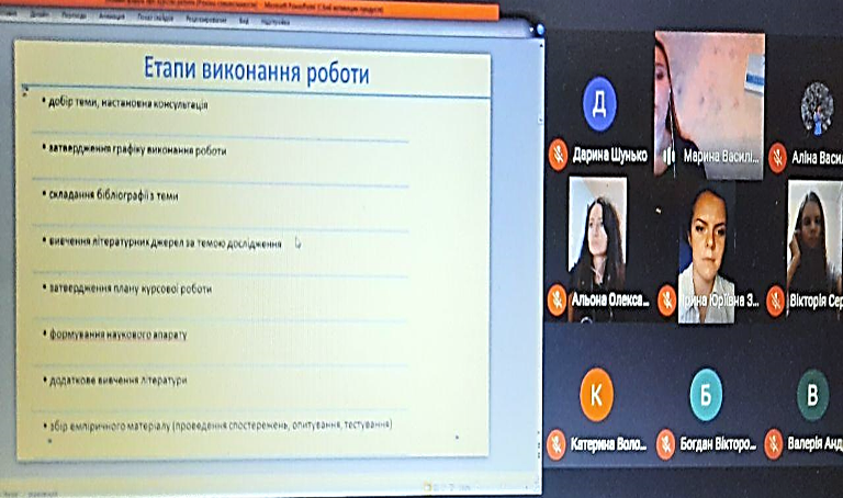 вимогами до написання курсової роботи. Учасники онлайн-конференції отримали практичні поради з оформлення курсового дослідження та корисні посилання, які допоможуть під час роботи над курсовою.