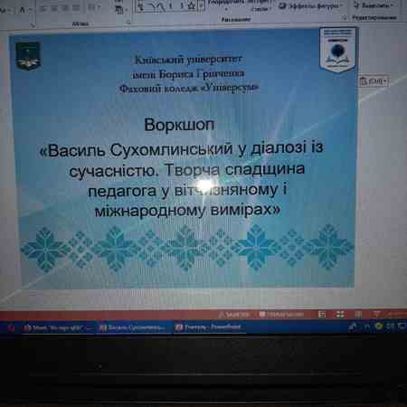 9 жовтня 2020 р. у Фаховому коледжі «Універсум» в рамках декади комісії з педагогічної освіти відбувся воркшоп «Василь Сухомлинський у діалозі із сучасністю. Творча спадщина педагога у вітчизняному і міжнародному вимірах» зі студентами спеціальності «Початкова освіта».