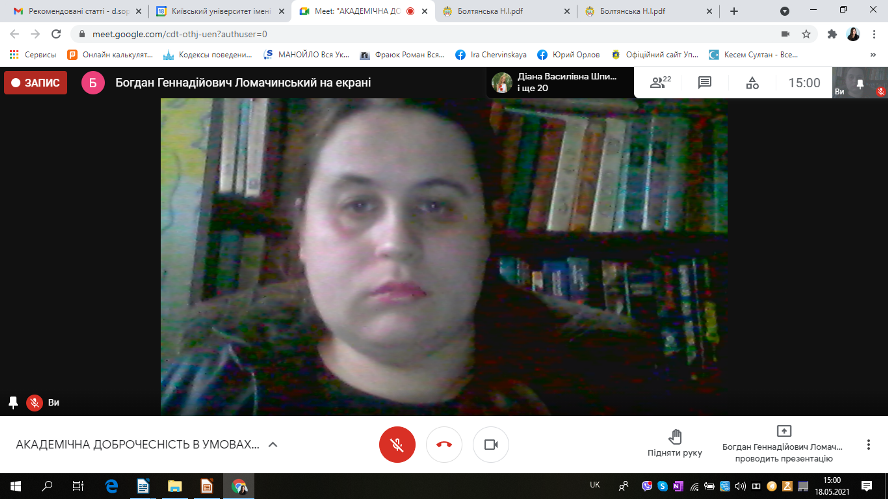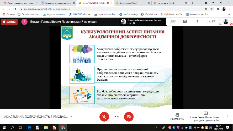 Під час заходу учасники обговорили стан дотримання етичних та юридичних норм академічної чесності в умовах дистанційного навчання, полемізували щодо ефективних механізмів запобігання та протидії академічної недоброчесності під час дистанційного навчання.
