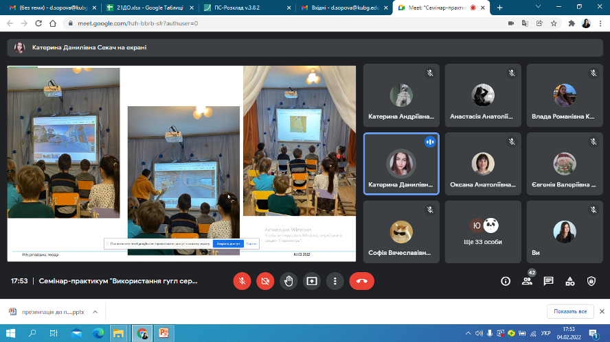 4 лютого 2022 року відбулася онлайн-зустріч студентів другого курсу спеціальності 012 Дошкільна освіта із випускницею коледжу Катериною Данилівною Секач. Катерина Данилівна поділилася досвідом стосовно особливостей використання Google сервісів та QR-кодів в освітньому процесі закладу дошкільної освіти, виокремила найактуальніші способи використання ІКТ в методичній діяльності педагогів: створення електронної бази для накопичення ілюстративних матеріалів, заготовок для оформлення презентацій, буклетів, інформаційних стендів; розроблення презентацій до семінарів, конференцій, консультацій для вихователів, до засідань педагогічної ради, методоб’єднань; використання мультимедійного супроводу під час занять, проведення свят та розваг, режимних моментів, батьківських зборів та консультацій для батьків; оформлення результатів моніторингу рівня розвитку дитини старшого дошкільного віку за допомогою електронного варіанту кваліметричної моделі та ін. Щиро дякуємо Катерині Данилівні за інформативну та цікаву бесіду!