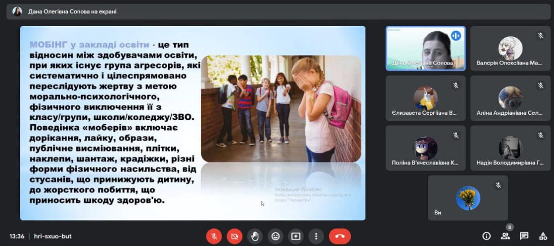 Мета семінару-практикуму: ознайомити учасників з поняттям "мобінг", впливом цього явища на особистість і колектив в цілому, опрацювати практичні методи виявлення постраждалих та агресорів, розглянути методи профілактики та втручання. Учасники заходу вирішили тематичні кейси та долучились до дискусії, поділились своїм досвідом.