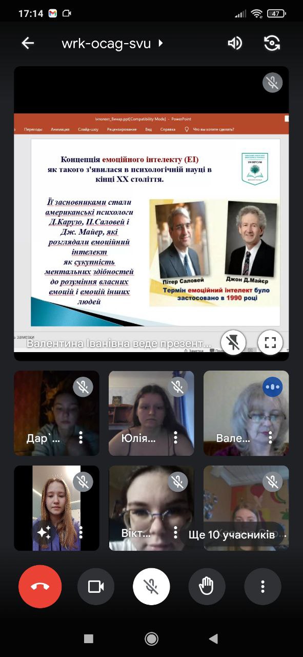 Учасники воркшопу розширили свої знання про поняття емоційного інтелекту та визначили його рівень за допомогою методики Н. Холла, дослідили емоційні бар’єри спілкування, а також презентували техніки розвитку емоційного інтелекту в умовах сьогодення. Заняття пройшло цікаво, інформативно, в творчій та доброзичливій атмосфері співпраці.