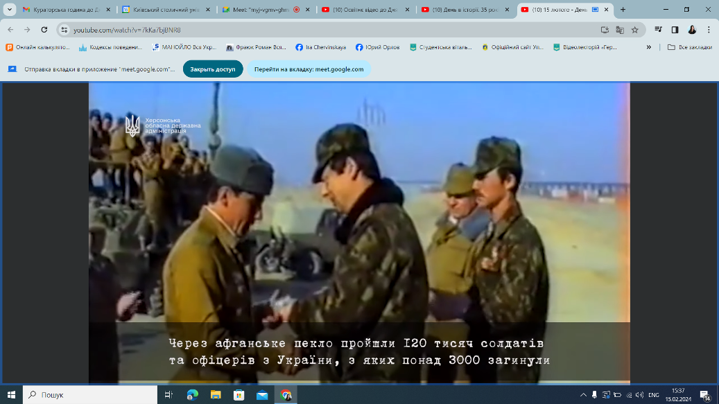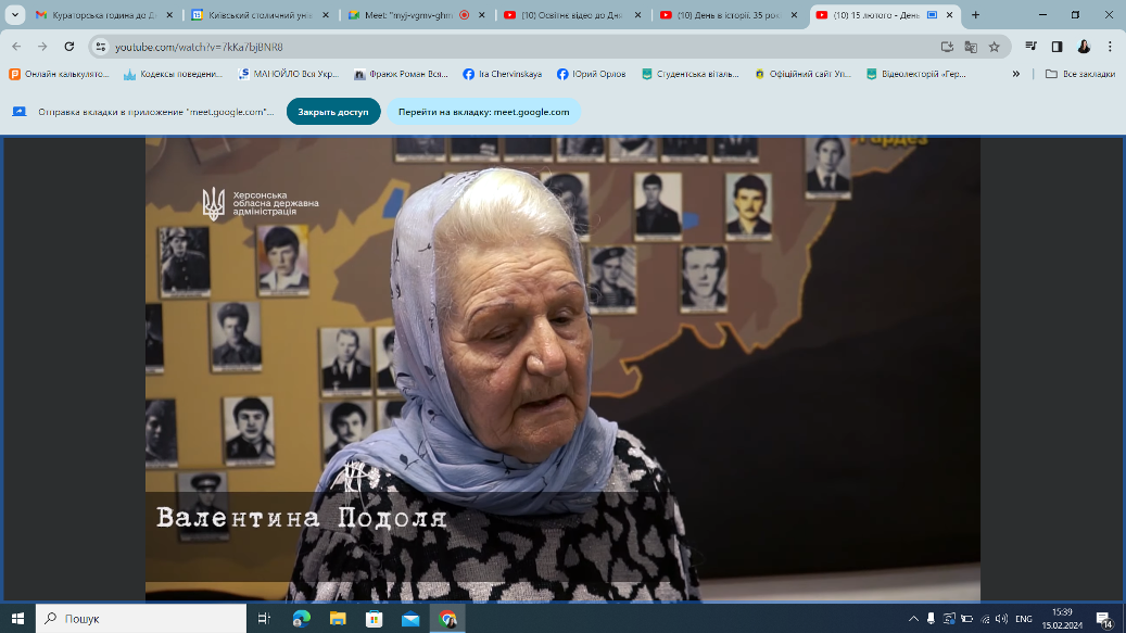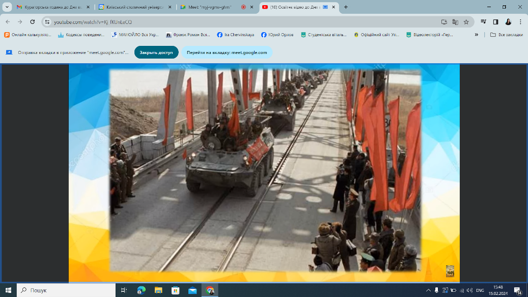 15 лютого 2024 року було проведено кураторську годину до Дня вшанування учасників бойових дій на території інших держав для студентів групи ДОфмб-1-21-3.0д.