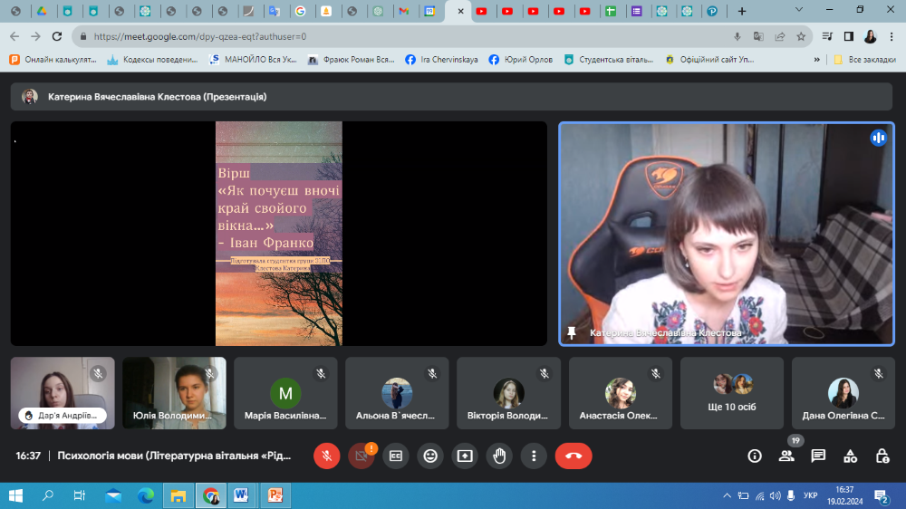 19.02.2024 р. з нагоди Міжнародного дня рідної мови було проведено літературну вітальню «Рідна мова – серця мого подих» для студентів ІІІ курсу спеціальності "Початкова освіта" та викладачів Фахового коледжу "Універсум". Мета заходу: відзначення та вшануванні рідної мови як невід'ємної частини культурного доробку та національної спадщини; підвищення усвідомлення важливості мови для формування національної та культурної ідентичності; заохочення та виявлення творчого потенціалу учасників через мовні та літературні виступи.