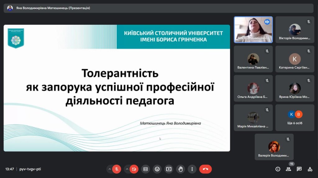 05 квітня 2024 року з нагоди декади циклової комісії з педагогічної освіти для студентів 3 курсу спеціальності 012 «Дошкільна освіта» Фахового коледжу «Універсум» Київського столичного університету імені Бориса Грінченка було проведено онлайн-тренінг «Толерантність як запорука успішної професійної діяльності педагога».