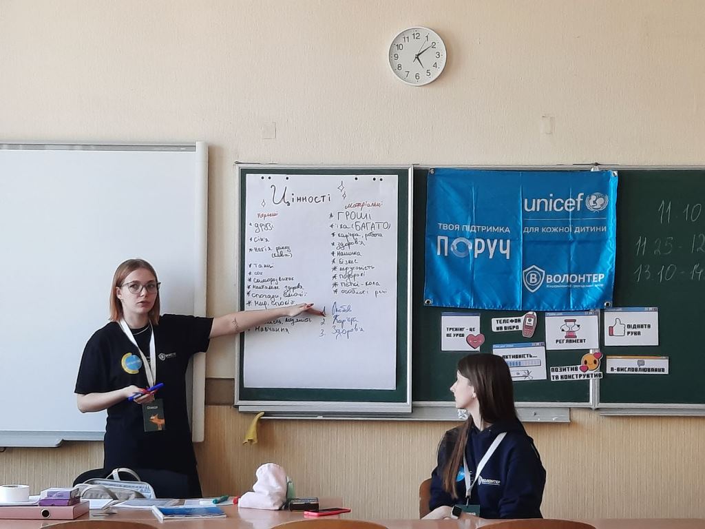 10 квітня 2024 року із студентами другого курсу Фахового коледжу «Універсум» Київського столичного університету імені Бориса Грінченка спеціальності «Хореографія» разом з соціальними працівниками Всеукраїнського громадського центру «Волонтер» – Расквасовою Олесею та Нечепурною Мариною було проведено тренінгове заняття «Самопізнання (цінності)».