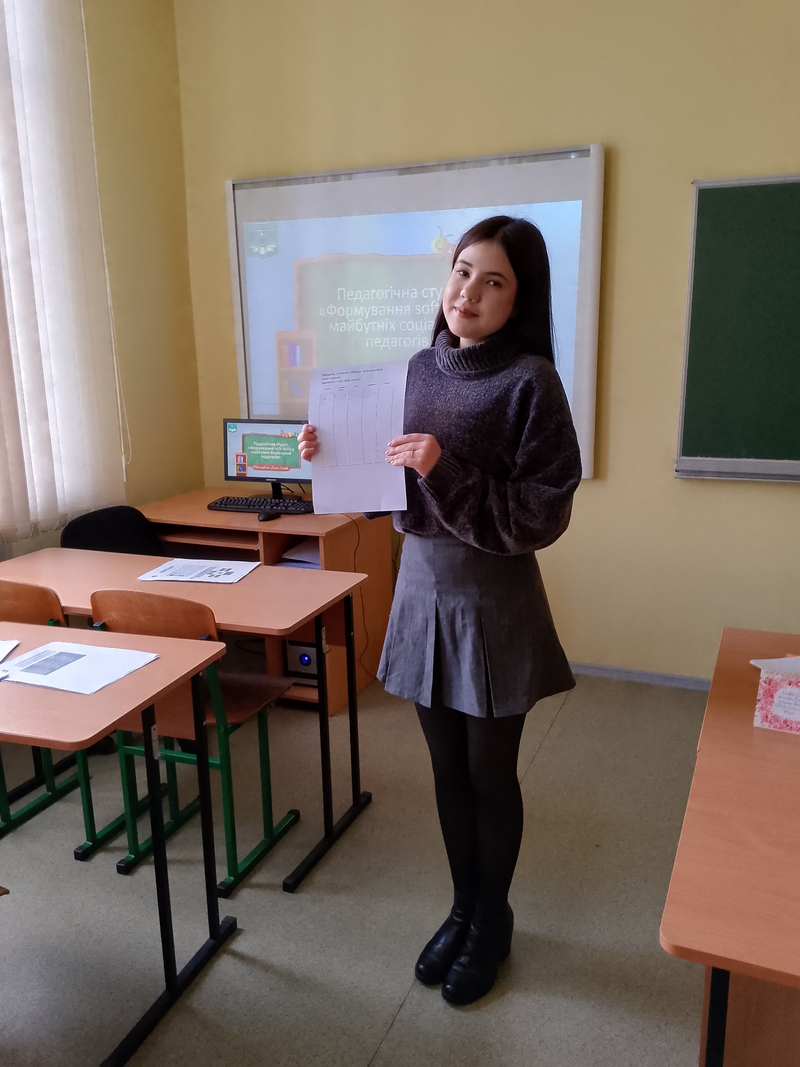 Формат: інтерактивна педагогічна студія з елементами тренінгу, міні-лекції, групових завдань та дискусій. Студенти підвищили обізнаність щодо ролі soft skills у професійній ефективності соціального педагога, активізували мотивацію до розвитку власних м’яких навичок, отримали практичні інструменти і стратегії для формування soft skills у процесі навчання, створили ментальну карту на тему: «Soft skills – мій ресурс у майбутній професії».