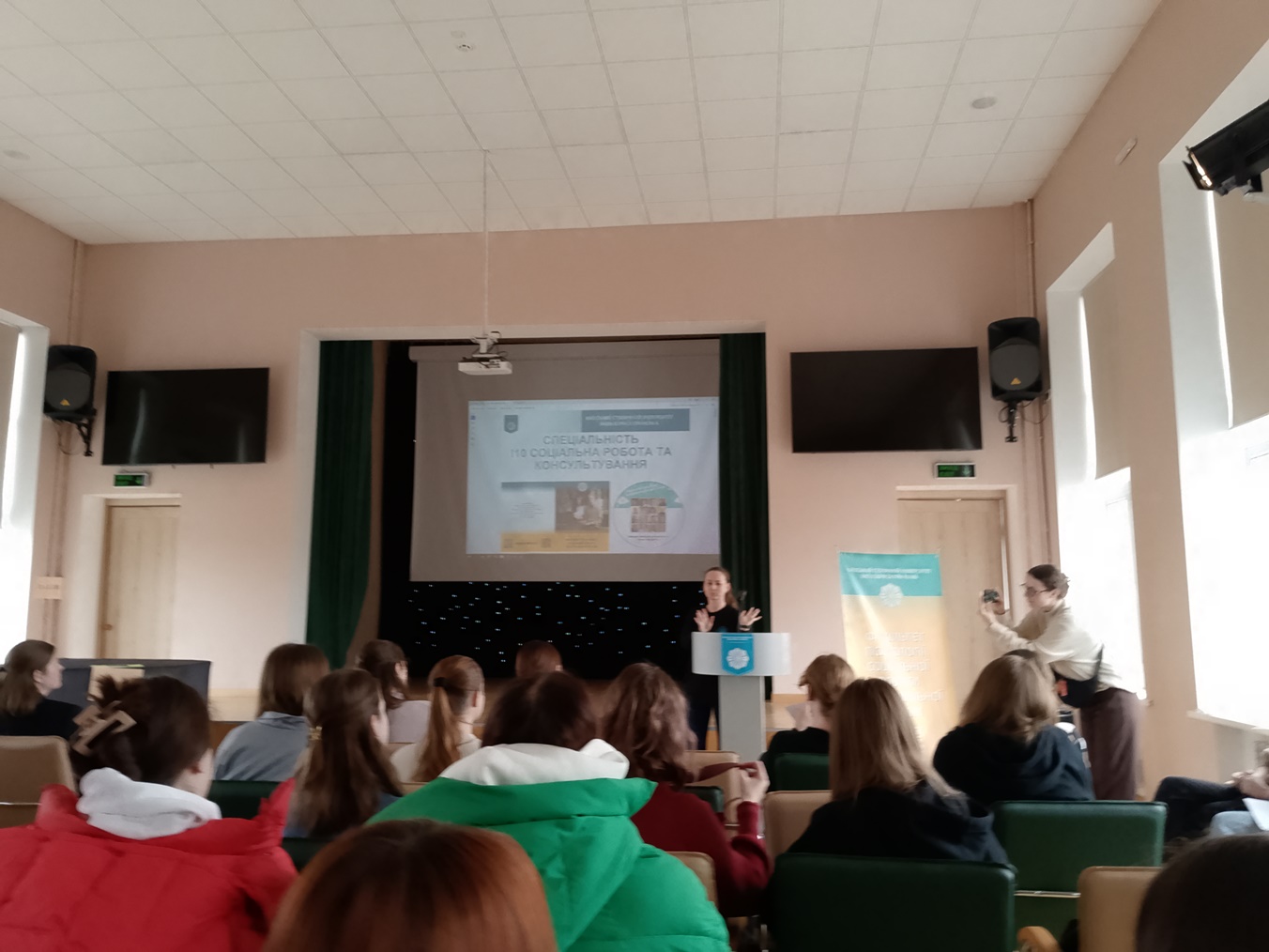 10 квітня 2025 року відбувся профорієнтаційний захід для здобувачів Фахового коледжу "Універсум", груп ПОфмб-1-21-4.Од, СПфмб-1-21-4.Од, СПфмб-1-22-3.Од. Викладачі Кафедри соціальної педагогіки та соціальної роботи Університету Грінченка КОТЕЛЕВЕЦЬ Анастасія, МАРТИНЮК Яна разом зі студентами ІІ курсу освітніх програм «Соціальна робота» (CРб-1-23-4.0д) та «Соціальна адвокація» (CАб-1-23-4.0д) презентували програми кафедри та провели профорієнтаційний квест «Соціальна робота - професія майбутнього». Під час квесту здобувачі мали змогу ознайомитися з різними локаціями (Міфи та факти, Квіз, Криничка, Фотозона, Пазли), на кожній із локацій завдання були спрямовані на знайомство зі студентським життям та спеціальністю "Соціальна робота та консультування". Тема проведеного заходу відповідає цілі сталого розвитку № 17 "Партнерство заради сталого розвитку".
