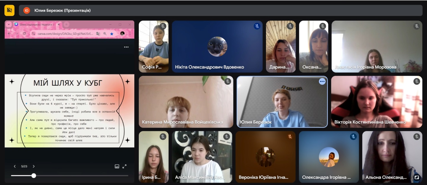 17 квітня 2025 року зі студентами третього курсу спеціальності «Соціальна робота» Фахового коледжу «Універсум» Київського столичного університету імені Бориса Грінченка в межах проведення Дня коледжу було проведено зустріч з випускницею спеціальності «Соціальна робота» на тему «Професійна реалізація в соціальній сфері».