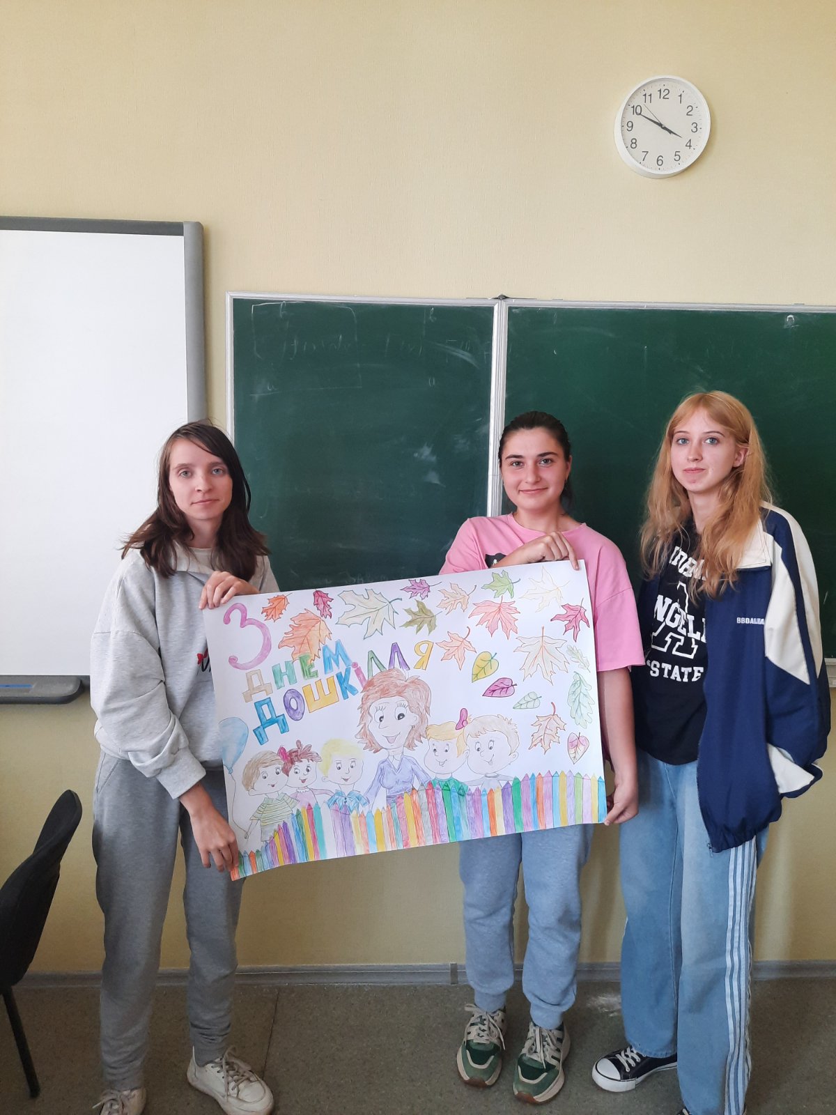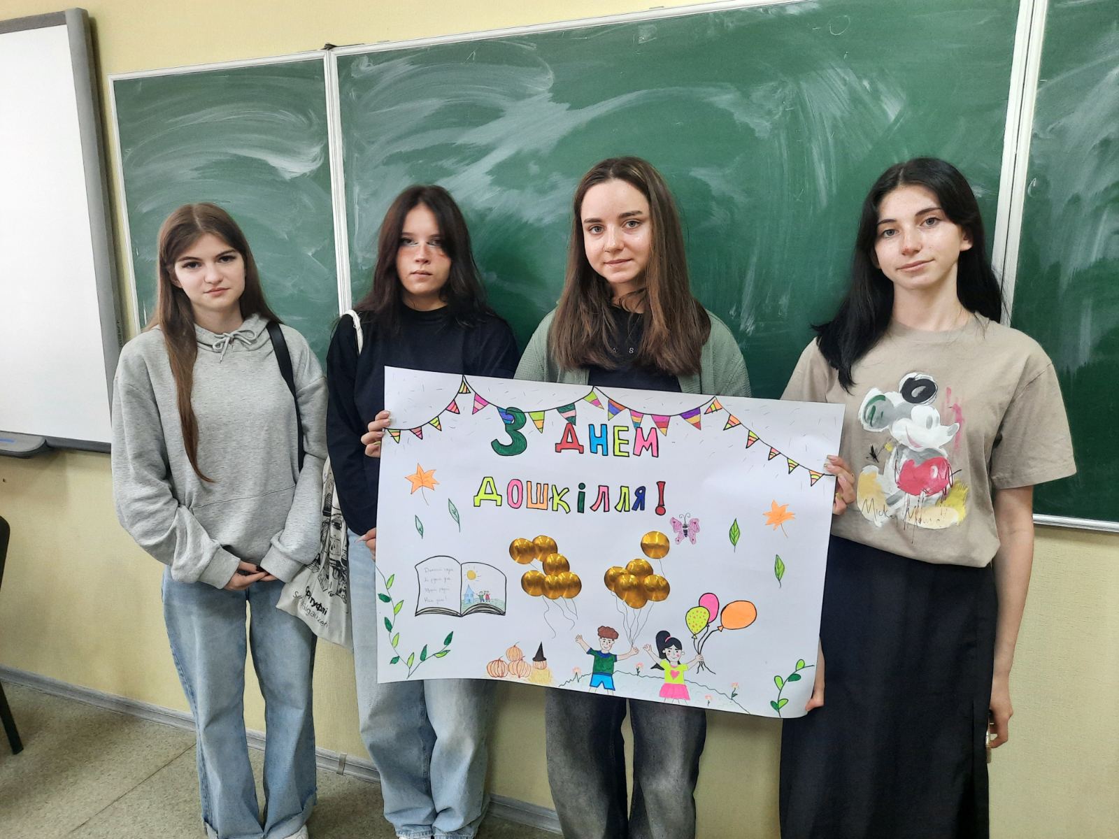 26.09.2025 р. з нагоди Всеукраїнського дня дошкілля студенти ІІ та ІІІ курсів спеціальності "012 Дошкільна освіта" організували творчу інтерактивну акцію — створення колажів на тему «Я люблю дошкілля». Цей захід мав на меті не лише естетичне оформлення простору, а й глибоку рефлексію над цінностями дошкільної освіти. Студенти отримали ватман, кольорові стікери, маркери, вирізки з журналів, цитати видатних педагогів, а також власні фото з практики в дитячих садках. На стікерах учасники записували: цитати про дошкілля та дитинство; власні думки про значення дошкільної освіти; побажання дітям та вихователям; асоціації з професією вихователя. Кожна група презентувала свій колаж, пояснюючи вибір цитат і образів. Це стало нагодою для обміну думками, емоціями та професійними переконаннями. Освітнє значення заходу: формування професійної ідентичності майбутніх педагогів, розвиток емоційного інтелекту та творчого мислення, поглиблення розуміння ролі дошкільної освіти в житті дитини.