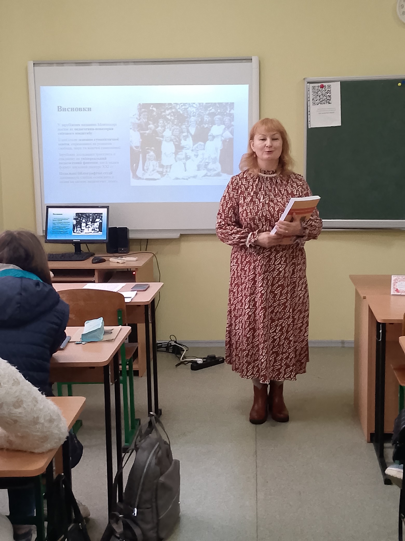 21.10.2025р. було проведено гостьову лекцію на тему «Висвітлення спадщини італійської педагогині Марії Монтессорі (1870-1952) в українських та закордонних виданнях» для студентів ІІІ курсу спеціальності "012 Дошкільна освіта". Лектор: Дурдас Алла Петрівна, доктор філософії, доцент, старший науковий співробітник відділу педагогічного джерелознавства та біографістики Державної науково-педагогічної бібліотеки ім. В. О. Сухомлинського, доцент кафедри сучасних європейських мов Державного торговельно-економічного університету. Марія Монтессорі, італійська педагогиня, відома своєю революційною педагогічною методикою, яка стала відомою як метод Монтессорі. Її підхід акцентує на самостійному навчанні та використанні спеціальних матеріалів, які сприяють розвитку дитячої творчості та інтелекту. У своїй лекції А.П. Дурдас розглянула різні аспекти філософії Марії Монтессорі, її погляди на роль вчителя та структуру освітнього середовища. Алла Петрівна проаналізувала, як ці ідеї можуть бути застосовані в сучасних освітніх системах, зокрема в умовах української школи та вищої освіти. Лекція стимулювала обговорення про зв'язок між педагогічними підходами Монтессорі та загальними філософськими концепціями, такими як гуманізм, індивідуалізм та розвиток особистості.