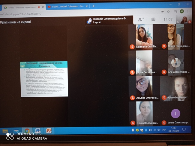 До Дня Університету 9 грудня у групі ДОмс-1-18-3.0д проведена тематична кураторська година на тему: "Ідейний натхненник Борис Грінченко". Студенти ще раз пригадали життєвий шлях письменника, його творчий доробок. У контексті майбутньої професії вихователя, особливу увагу приділили оповіданням, казкам, байкам Бориса Грінченка.