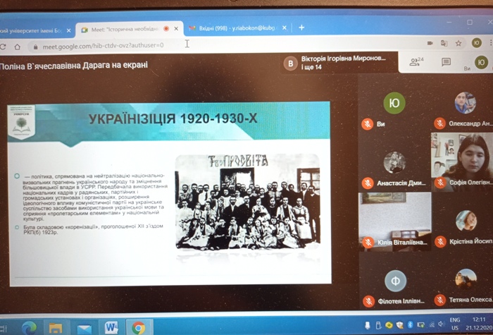 21 грудня 2020 року відбувся круглий стіл на тему «Радянська модернізація України, методи її здійснення». У заході взяли участь студенти групи ПOфмб-1-20-4.0д. Учасники круглого столу аналізували економічне, політичне, соціальне становище України кінця 20-х рр. ХХ століття. Розглянули причини, методи та результати індустріалізації як трагічної сторінки історії українського народу.