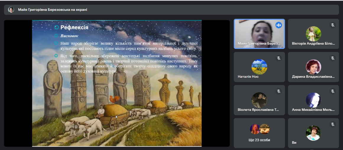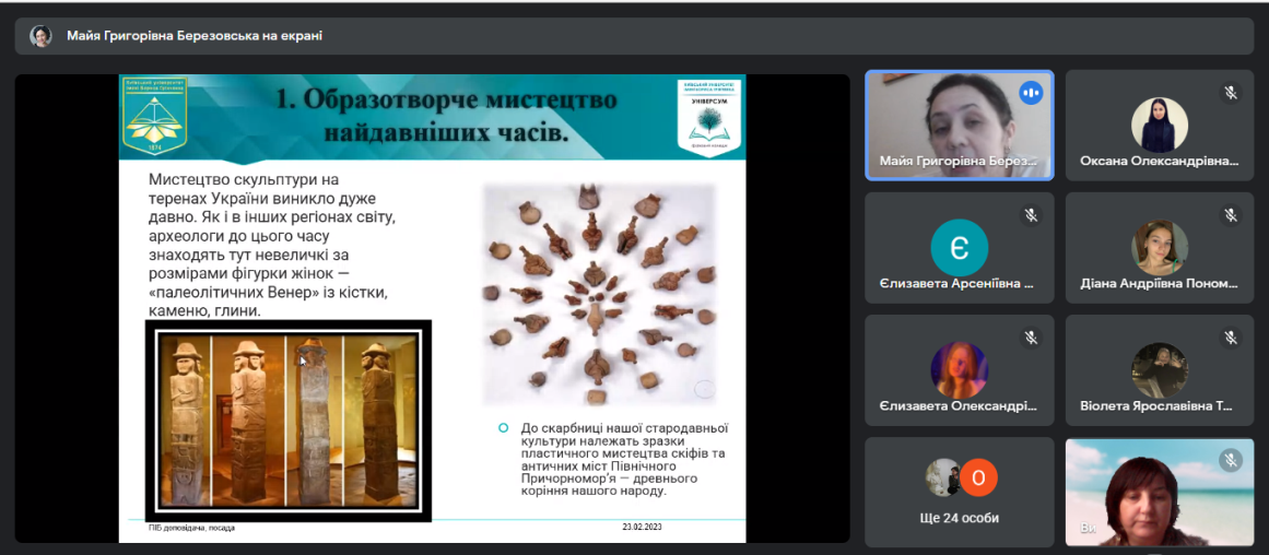 23 лютого 2023 року в Фаховому коледжі "Універсум" Київського університету імені Бориса Грінченка викладач циклової комісії суспільних дисциплін і правознавства Березовська Майя Григорівна провела відкрите заняття з дисципліни "Мистецтво" в групі ВСфмб-1-21-4.0д. на тему: "Розвиток скульптури в Україні".