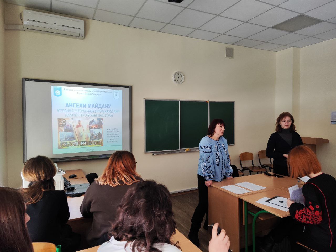 20 лютого 2025 року до Дня пам'яті Героїв Небесної Сотні та в рамках декади педагогічної майстерності циклової комісії суспільних дисциплін і правознавства у Фаховому коледжі "Універсум" зі студентами ПОфмб-2-23-4.0д та ММфмб-1-23-4.0д була проведена історико-літературна вітальня "Ангели Майдану".