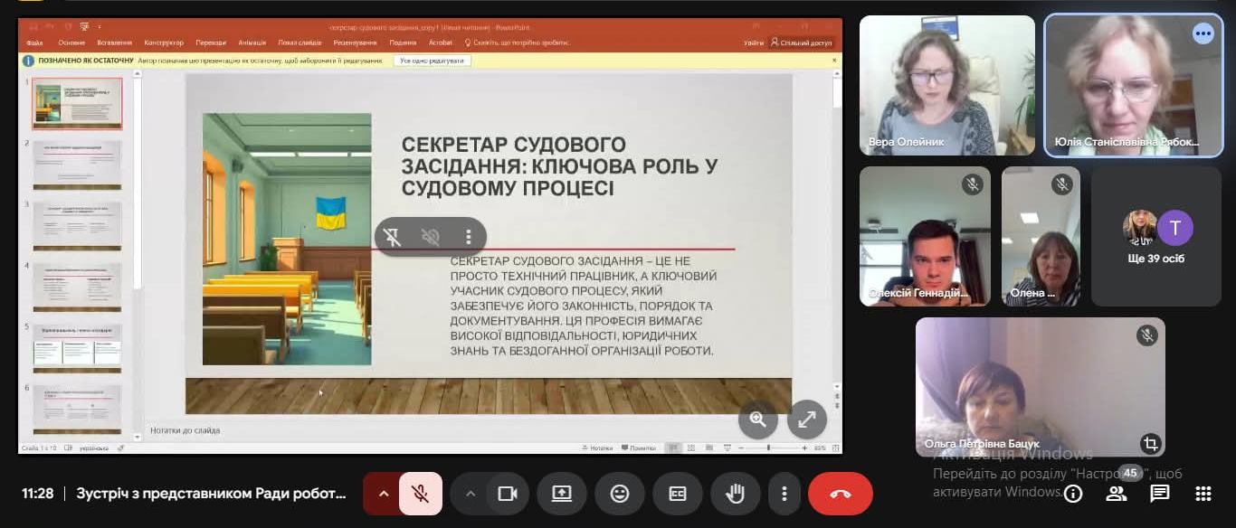 Під час зустрічі Віра Олійник ознайомила студентів з особливостями роботи суддів в умовах воєнного стану, розповіла цікаві приклади з власної судової практики та дала поради студентам щодо побудови юридичної кар'єри від секретаря суду до судді районного суду.