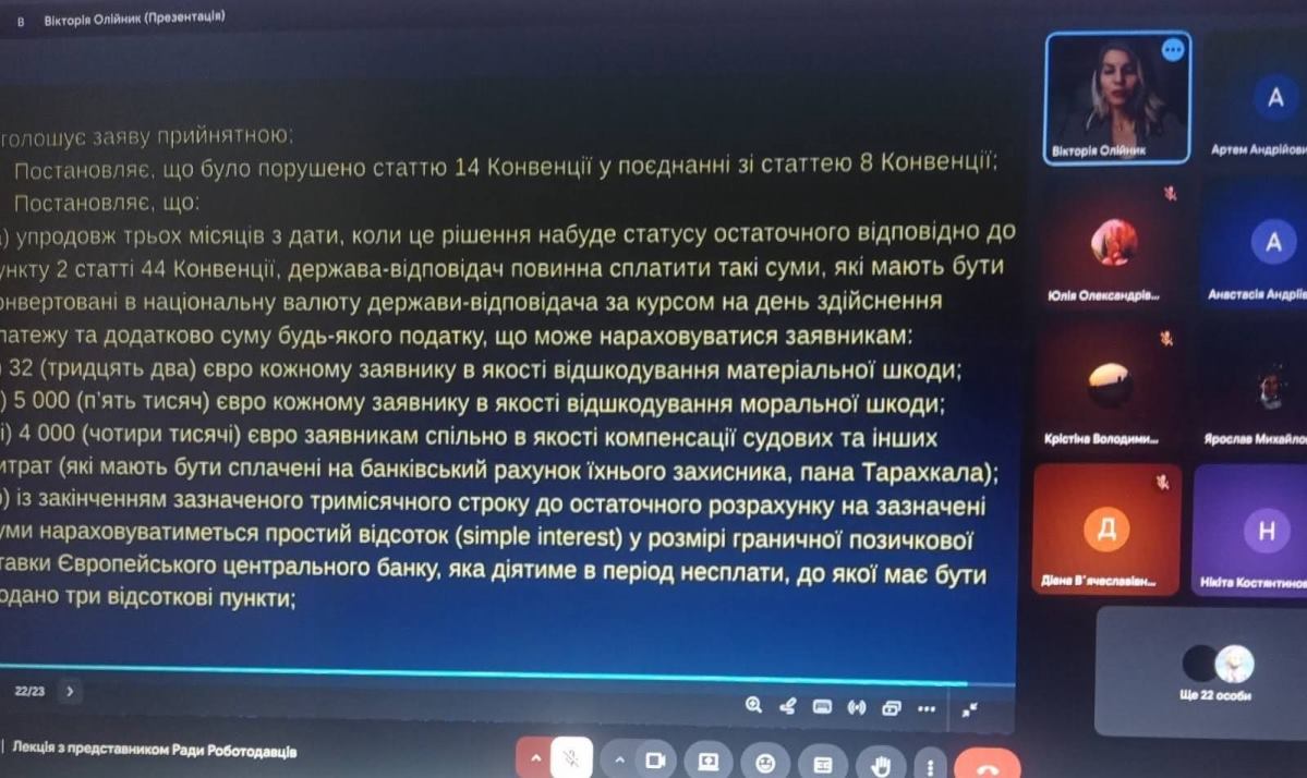На завершення лекції студенти отримали практичні поради щодо того, як ефективно використовувати практику ЄСПЛ в майбутній правничій діяльності.