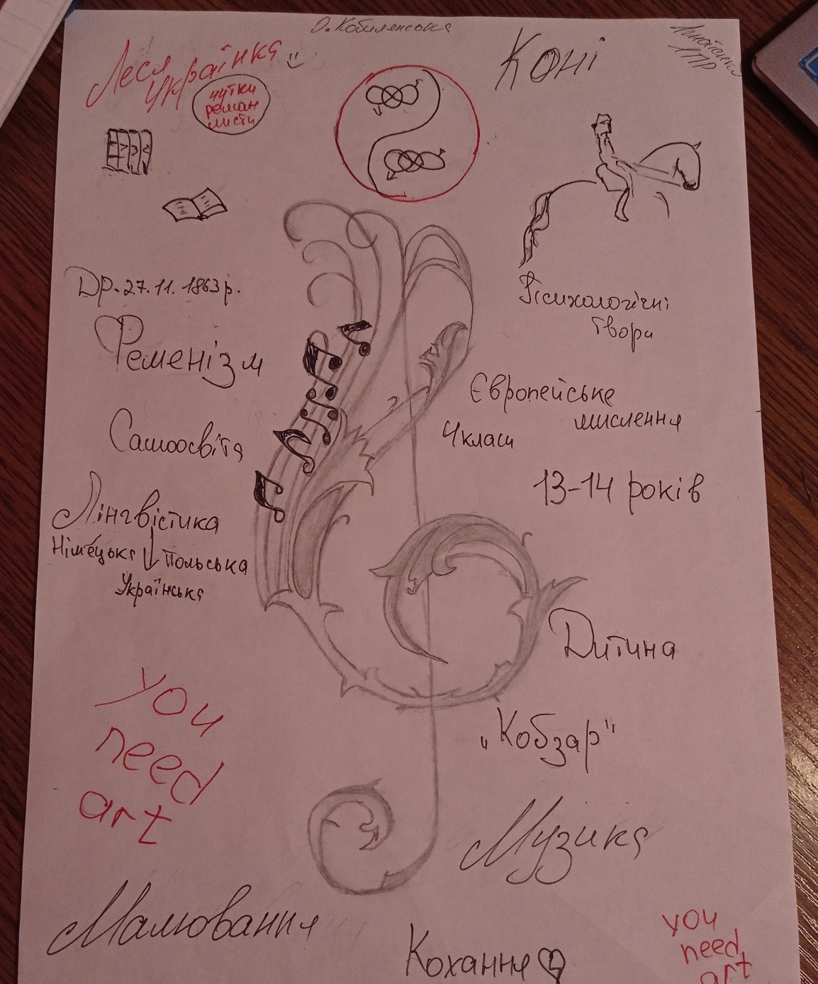 17 та 20 листопада на парах з української літератури студенти 1 курсу спеціальностей «Правознавство», «Музичне мистецтво», «Образотворче мистецтво», опрацьовуючи тему заняття , розробляли карти знань на тему: «Життєвий і творчий шлях Ольги Кобилянської».