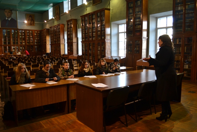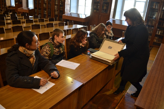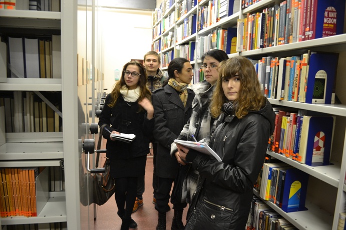 В рамках бібліотечного марафону, який тривав у період з 3.11.2014 р. по 7.11.2014 р. студенти ІІ курсу спеціальності «Бібліотечна справа» під керівництвом викладача Циклової комісії з видавничої справи, культури та української філології Сірої Олени Анатоліївни відвідали низку провідних університетських та публічних бібліотек м. Києва: Наукову бібліотеку Національного університету «Києво-Могилянська академія»